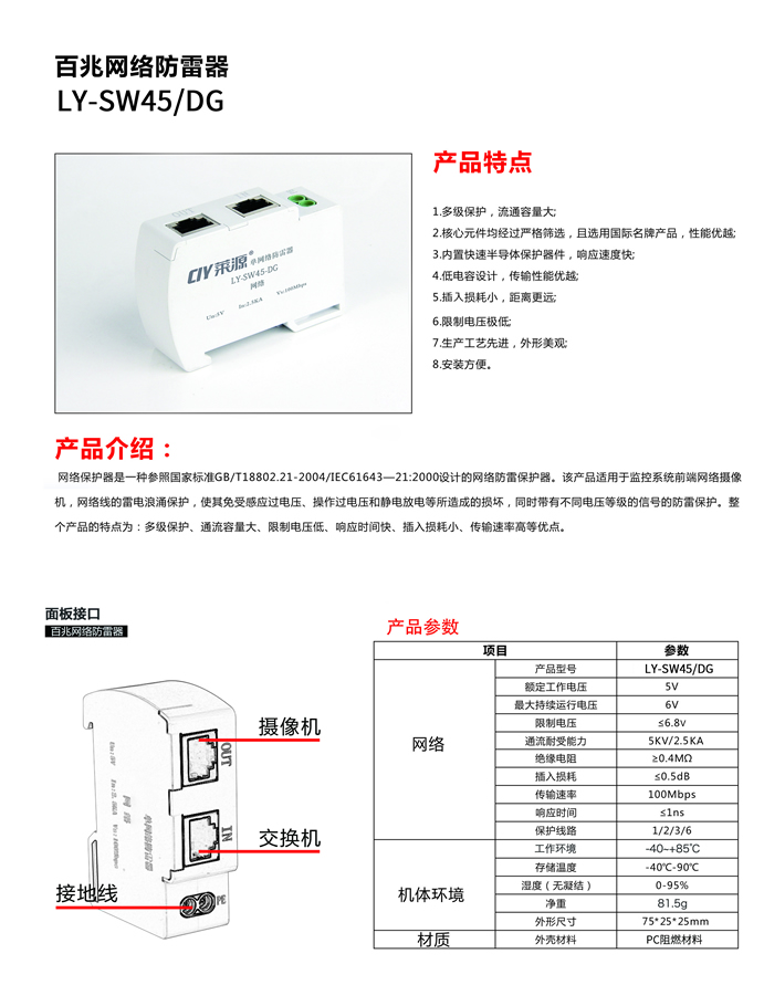 LY-SW45/DG 百兆網(wǎng)絡防雷器